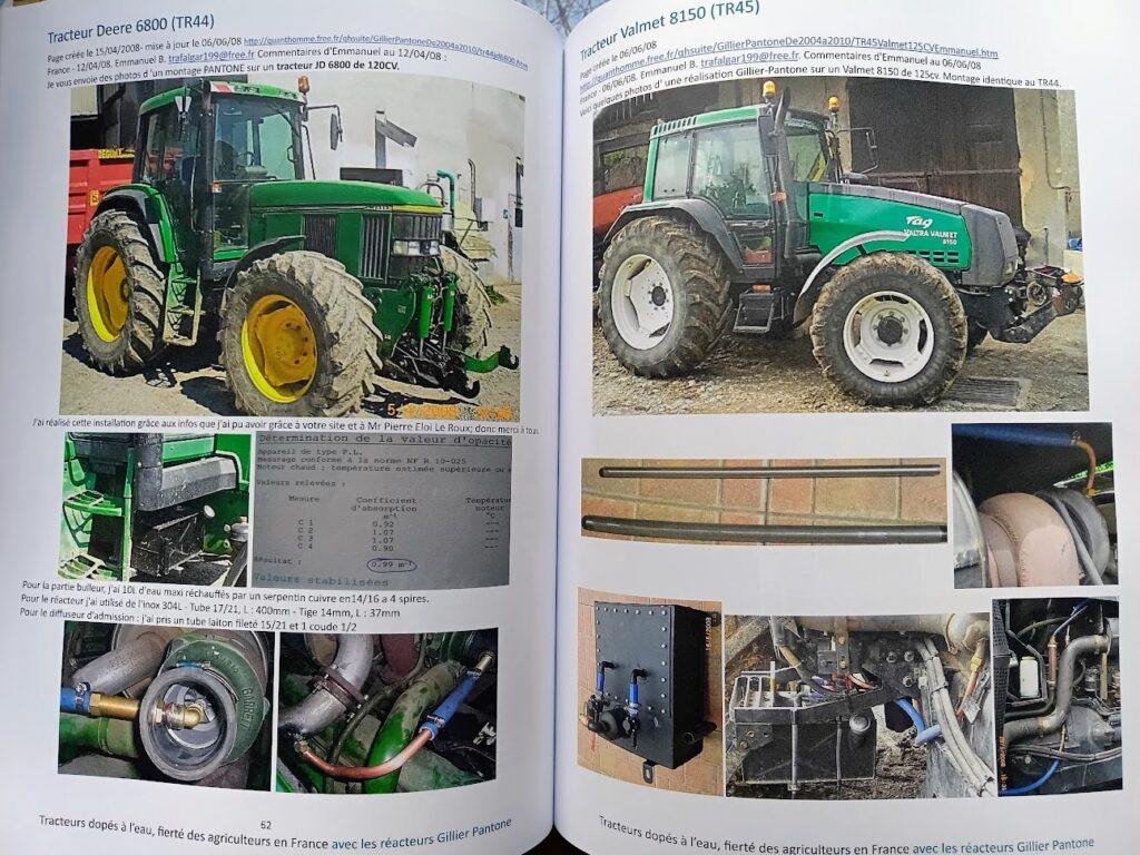 Titre : Tracteurs dopés à l’eau, fierté des agriculteurs en France: avec les réacteurs Gillier Pantone